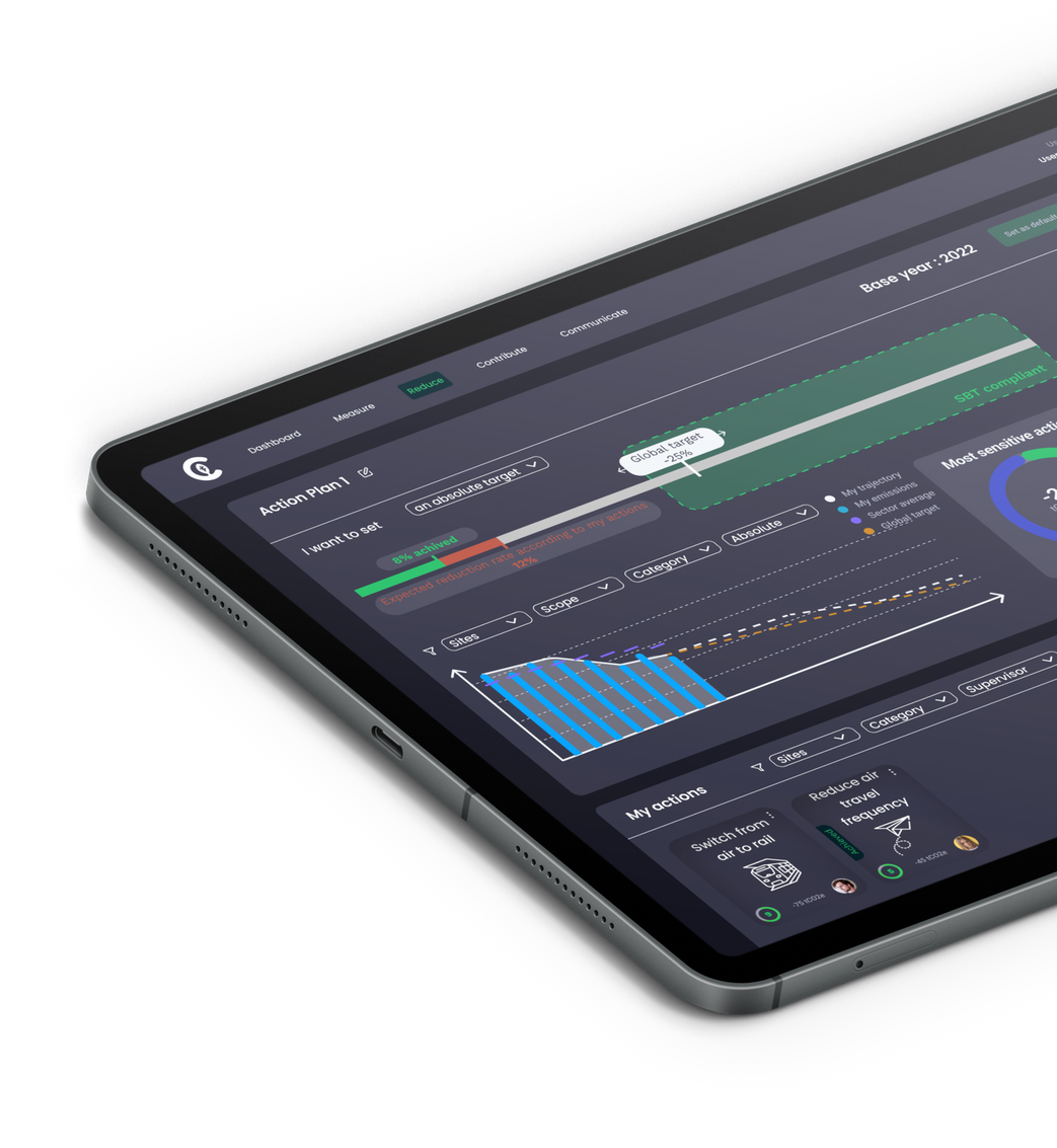 With the support of our consultants and digital tools, we build your climate strategy: measure your emissions, design a concrete transition plan, ensure reliable reporting, and contribute to high-integrity carbon projects.